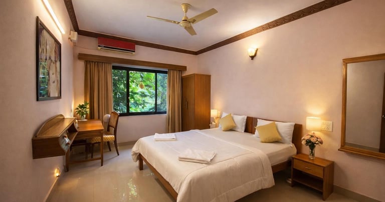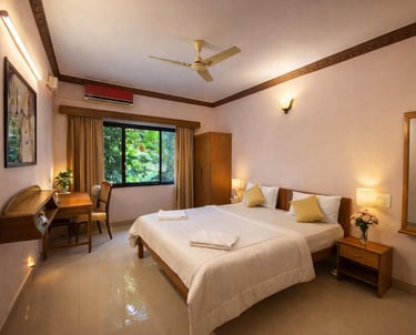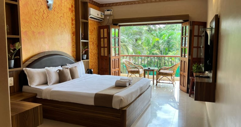 Our deluxe rooms are design for comfort and coziness during your stay at wellnessinn. There is not much difference in deluxe and premium room except the direction of the room. View from the balcony is of neighbouring property and there pool area.